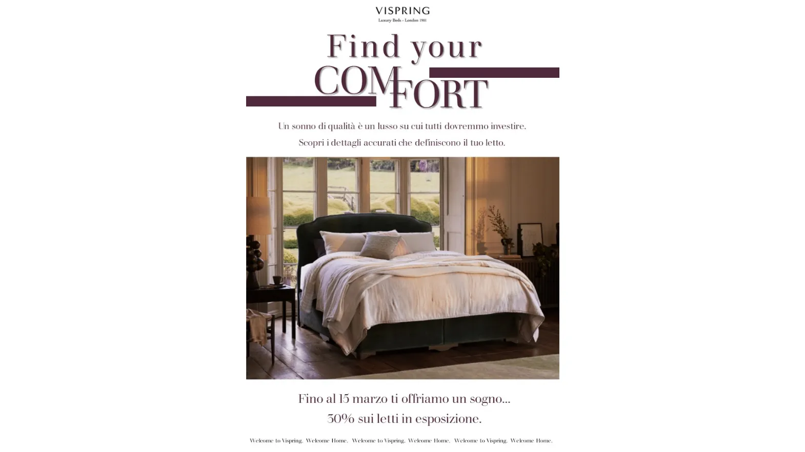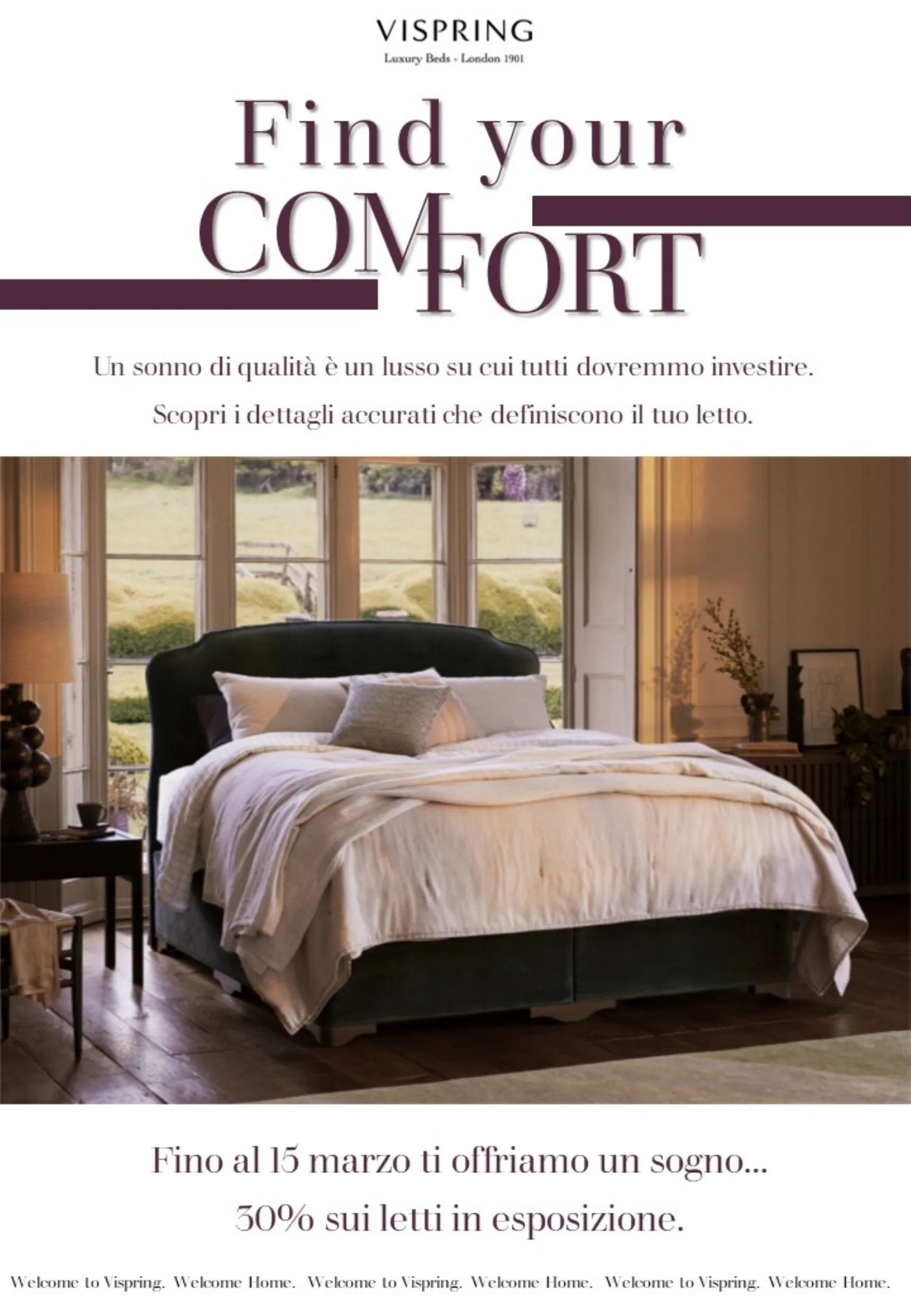 Fino al 15 Marzo 2026 to offriamo un sogno... fino al 30% sui letti VISPRING in esposizione.